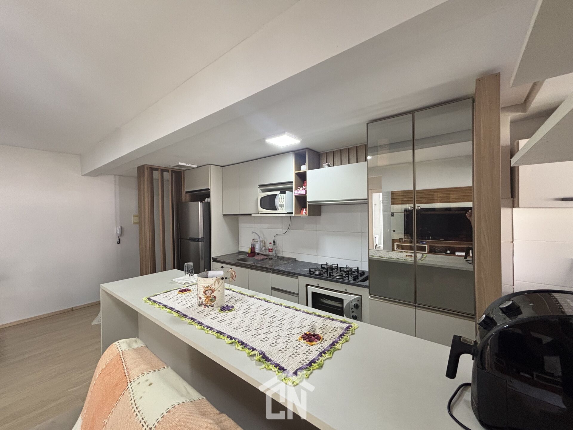 Permanece no apartamento, os móveis sob medida da cozinha, banheiro e o dormitório de solteiro.