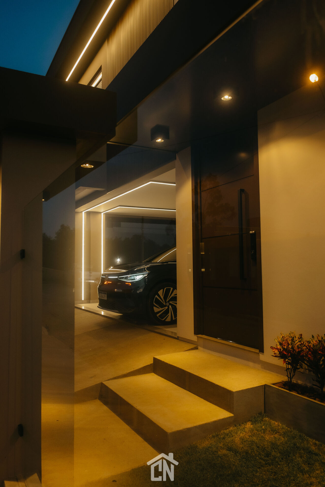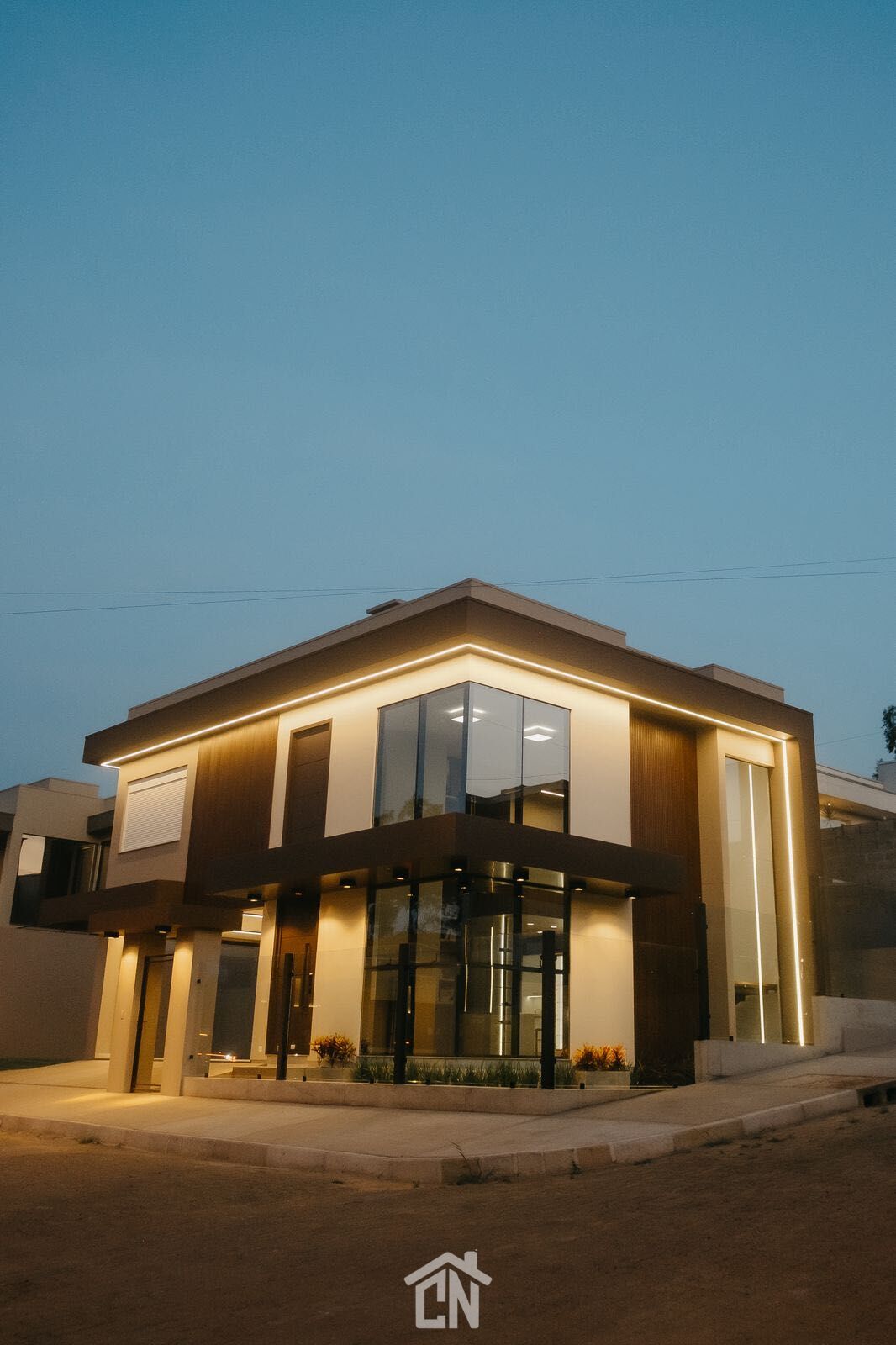 •Iluminação arquitetônica e fachada de destaque, valorizando o design contemporâneo;