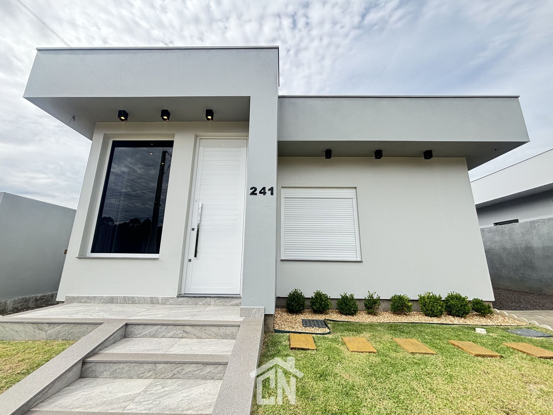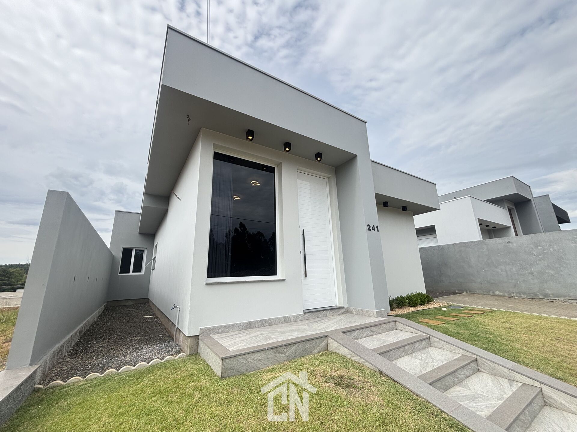 Casa com ótimo padrão de acabamento, piso porcelanato, aberturas em alumínio, massa corrida nas paredes, rebaixo em gesso e lâmpadas embutidas.
