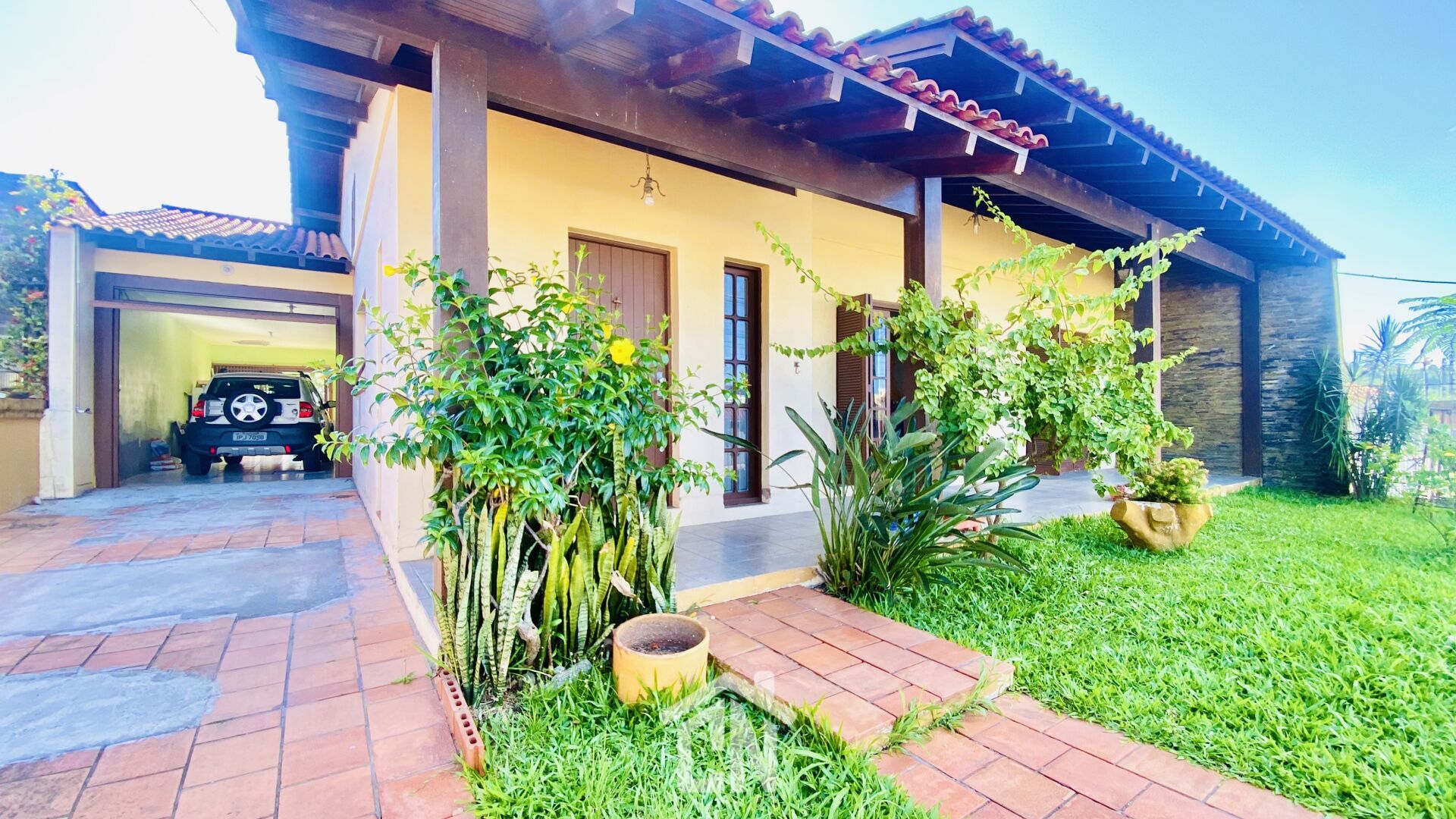 Garagem para 2 carros (com churrasqueira, banheiro e lavanderia).