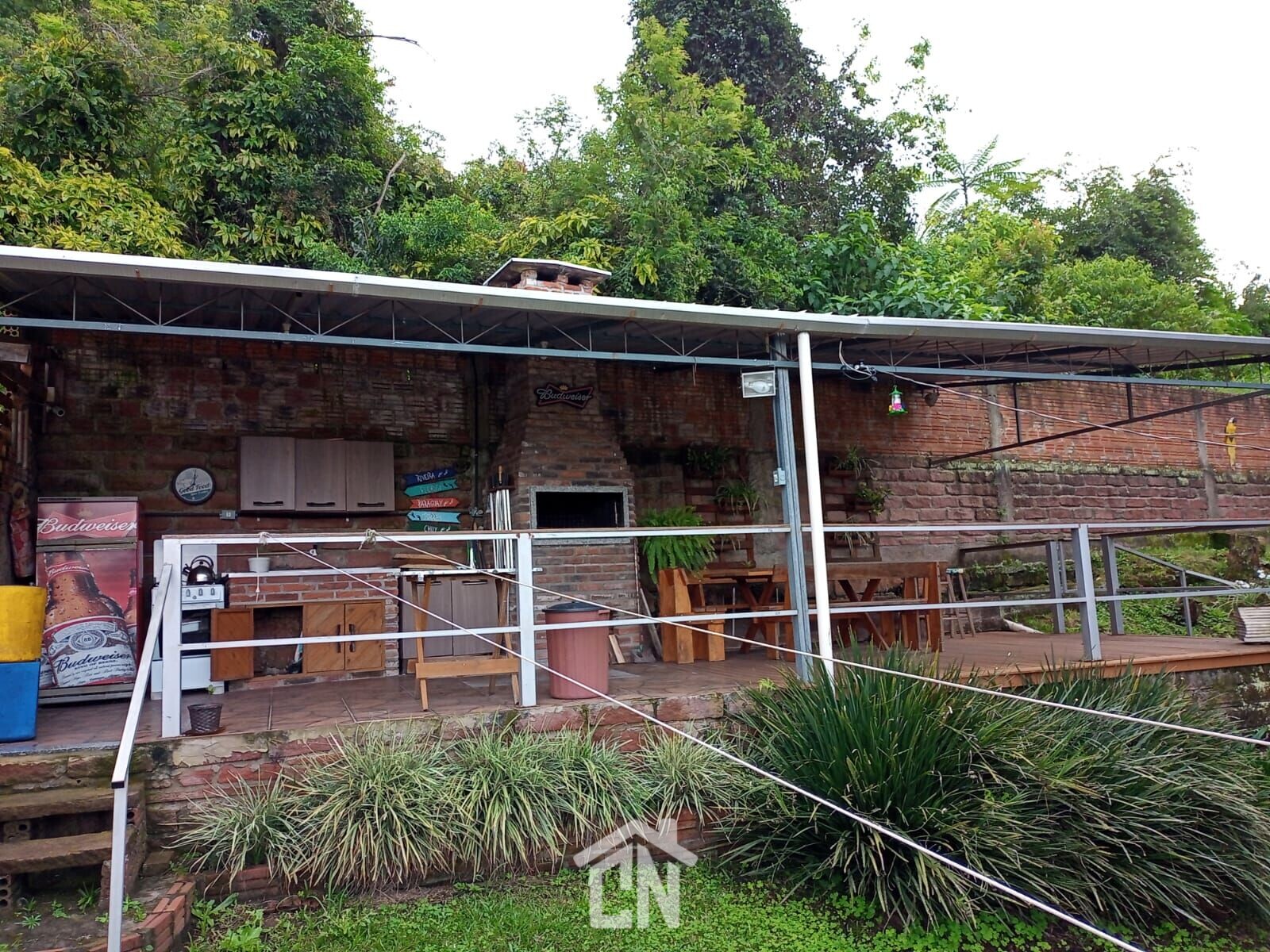 O terreno possui uma casa de madeira com 3 dormitórios, sala, cozinha, banheiro e lavanderia.
