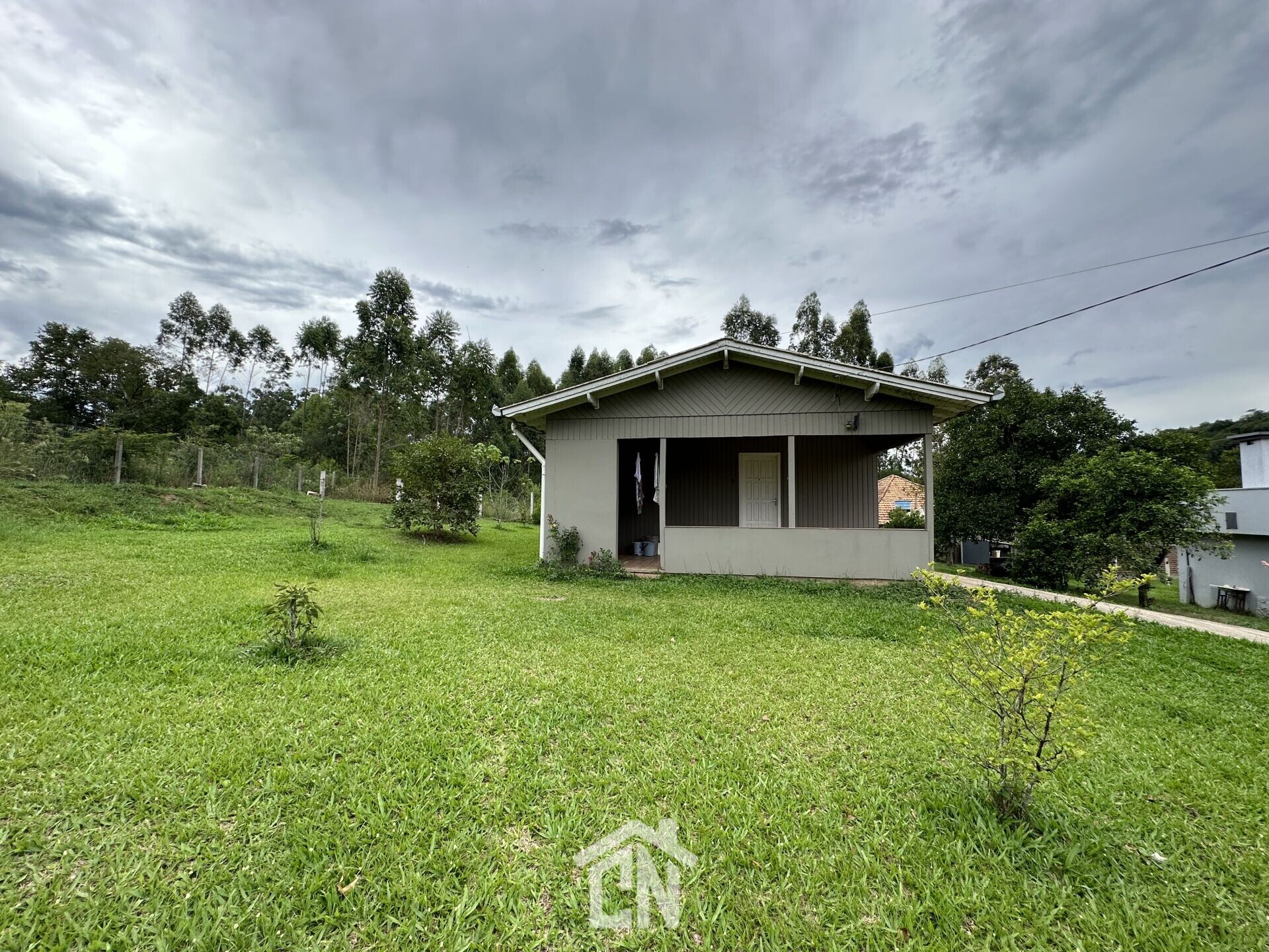Duas casas, uma em alvenaria com 121,00 m2 de área construída e outra mista com 63 m2,em um terreno com superfície de 2.940,67 m2, arborizada, toda cercada.