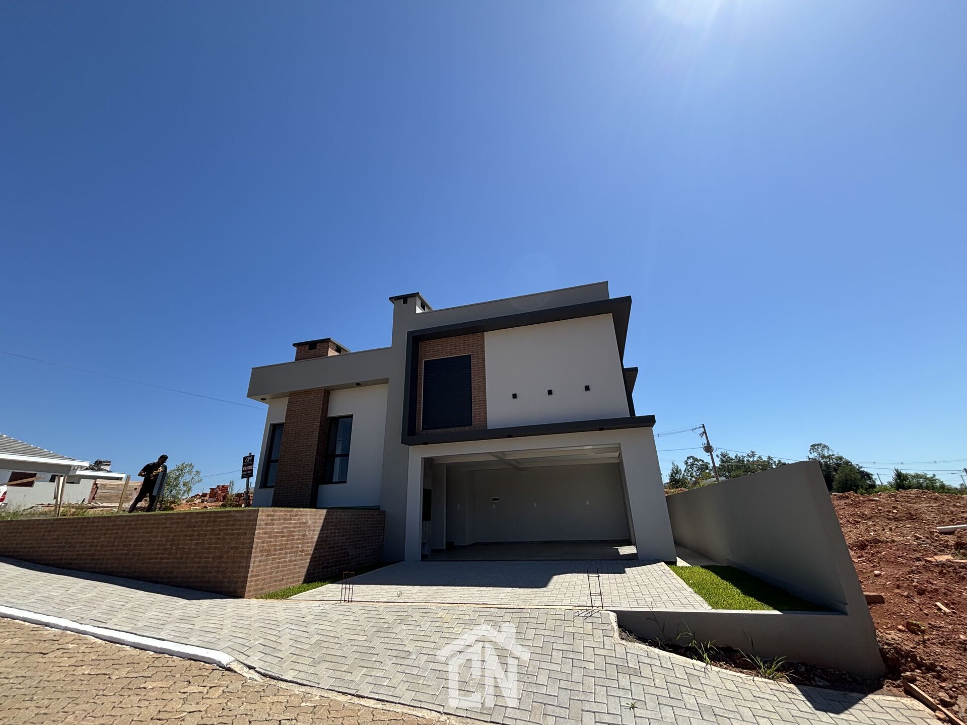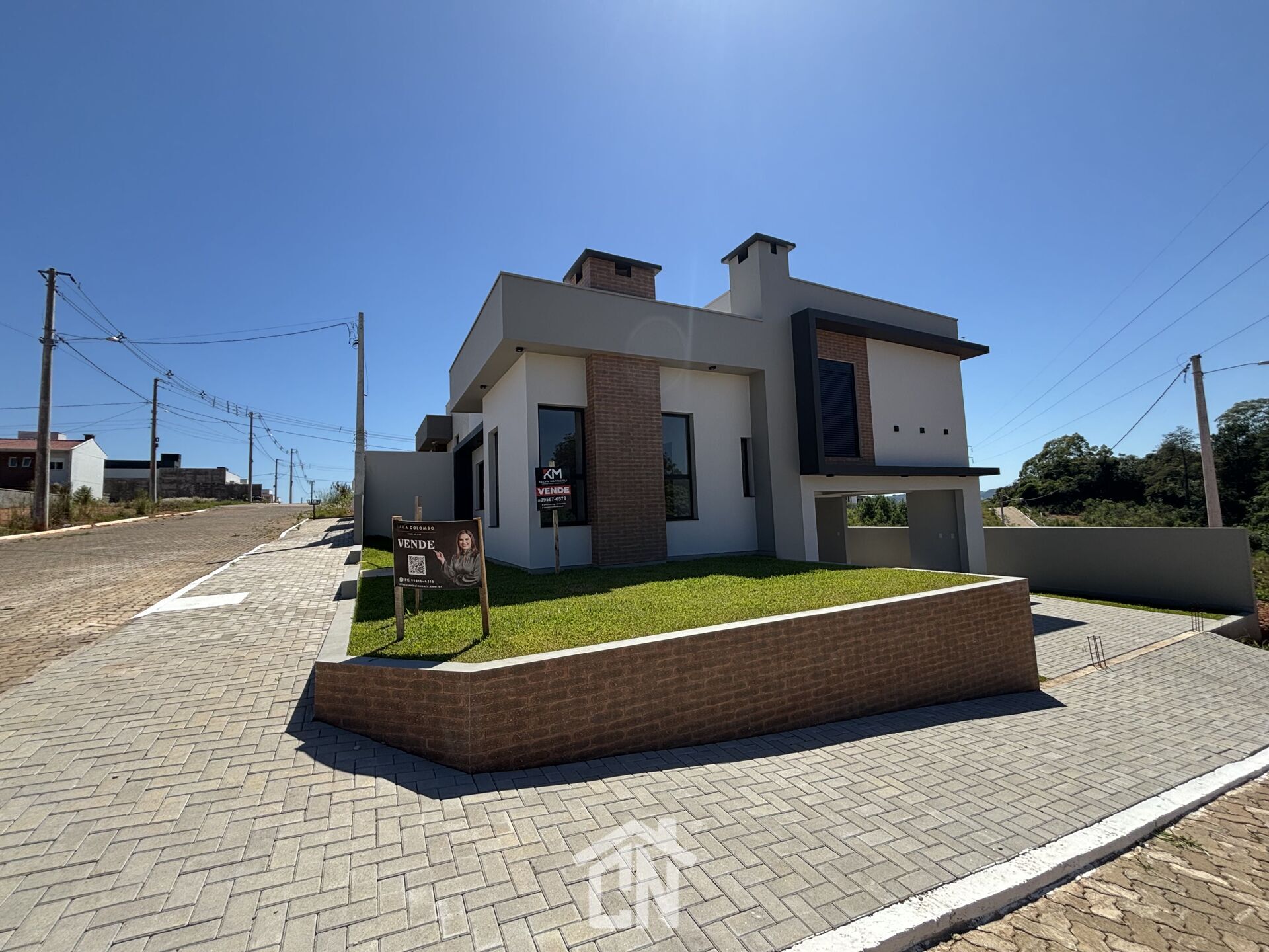 Casa nova, de esquina, no Loteamento Porto Rico, com linda vista, distribuída em 1 suíte, 2 suítes americanas, lavabo, sala de estar com lareira integrada com a sala de jantar, cozinha, área de serviço e garagem coberta para dois carros.