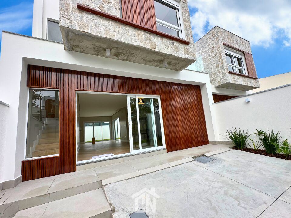 Distribuição: Sala de estar e jantar com lareira, integradas à cozinha, área gourmet com churrrasqueira, 01 suíte + 02 dormitórios (sendo um deles com terraço), banheiro social, lavabo, lavanderia, despensa, vaga para dois carros um ao lado do outro.