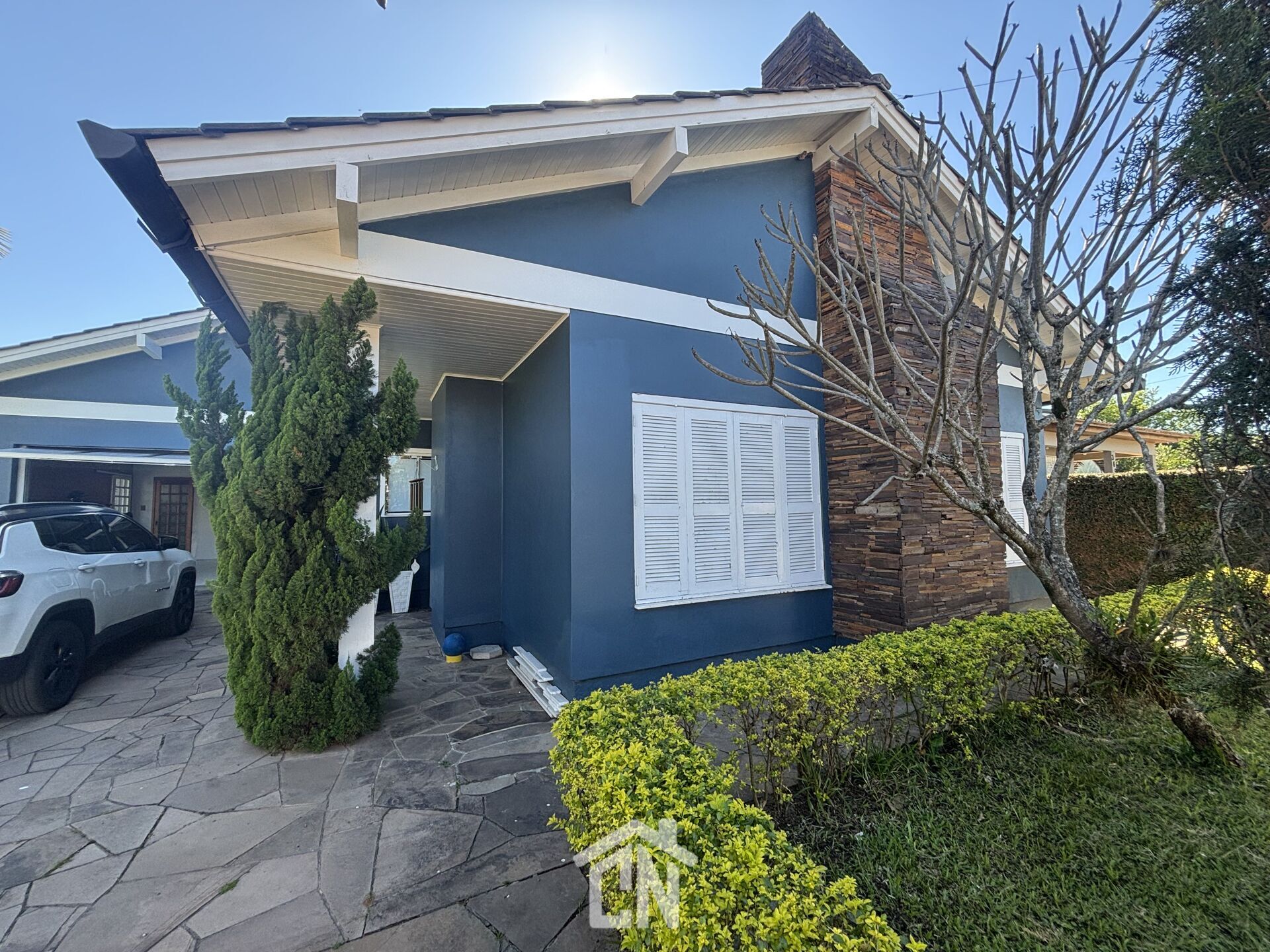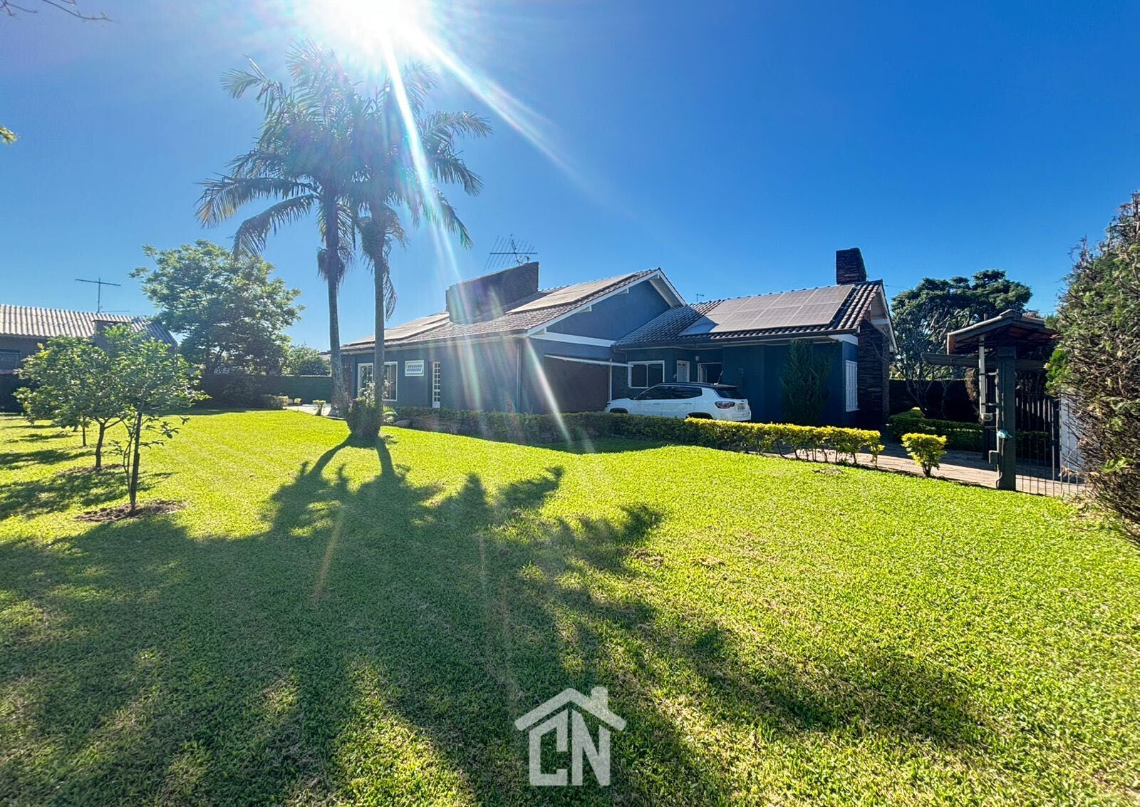 Com aproximadamente 240m² de área construída, implantada em um generoso terreno de 27x30m, o imóvel oferece 4 dormitórios, sendo 3 suítes que garantem privacidade e bem-estar à família. As aberturas em alumínio e madeira realçam a iluminação natural e valorizam o estilo clássico da construção.