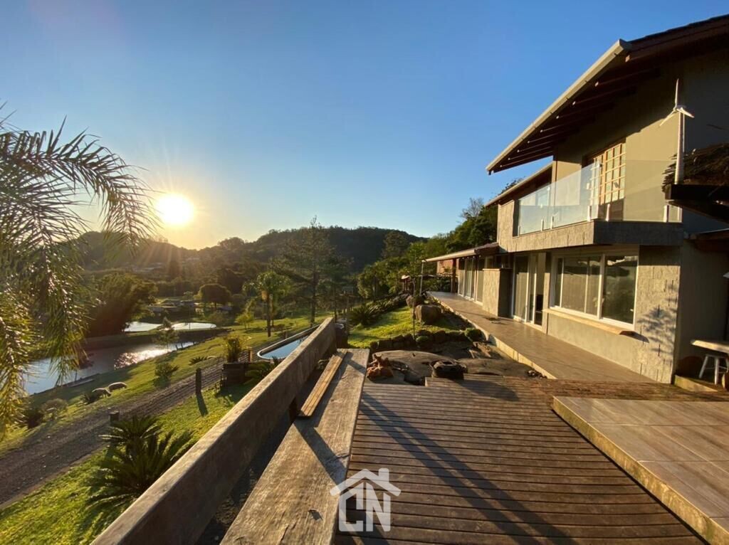 A área é toda cercada e possui 2.4 hectares, 3 açudes, quiosque, paisagismo, 3 galpões além de uma bela casa com 180m² distribuída em cozinha e sala integradas com lareira, 2 dormitórios sendo 1 suíte com sacada com vista para o morro São João e 2 banheiros sociais.